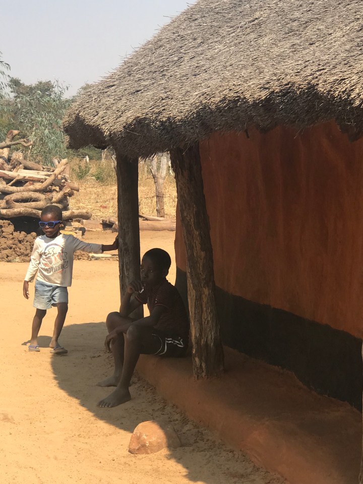 We just stopped at a village. The head of the village gave a talk about the village and then gave us a look around his home. I played soccer with five kids instead of accompanying the group. We passed out some ball caps we brought and I was short one so I gave the little girl my pink bandana. She was darling. So reminded me of Rose. I showed them photos of my grandkids and they were so interested in looking at all my photos.